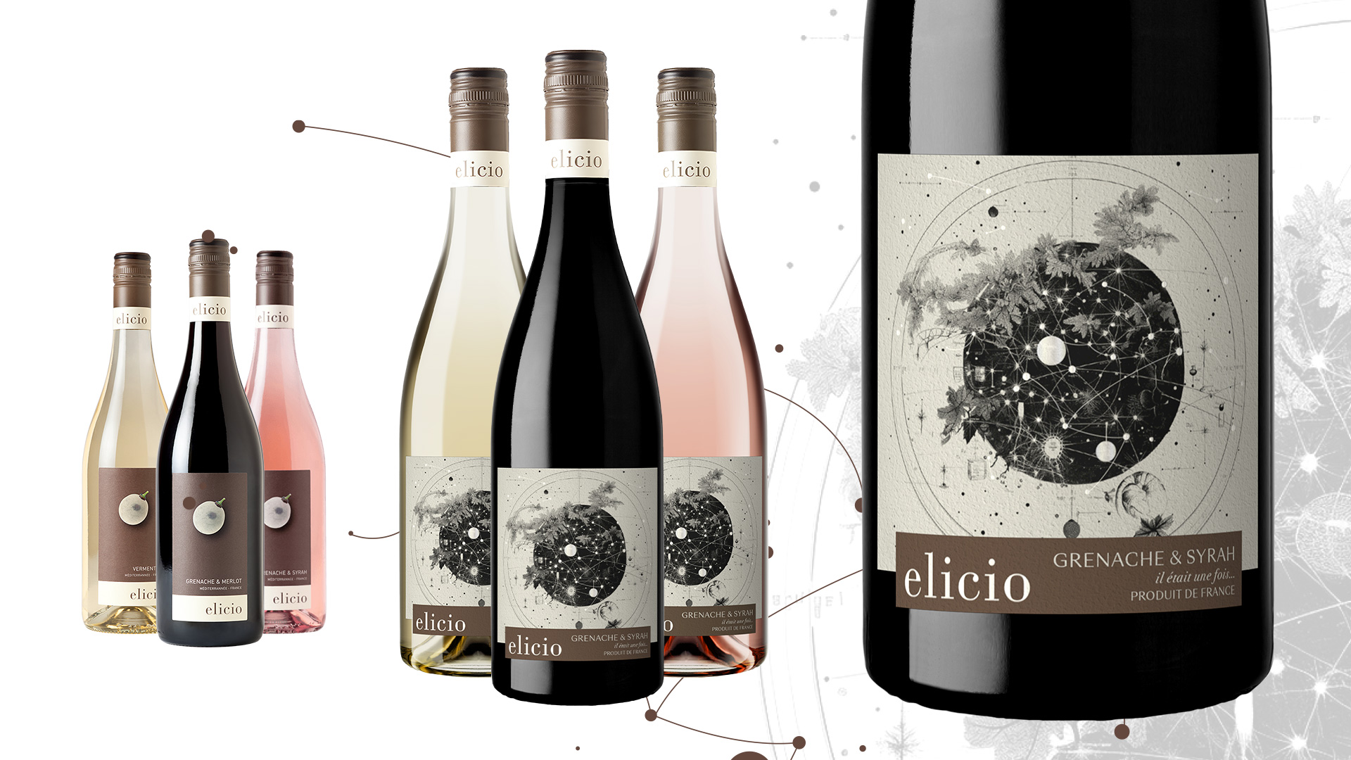Création et refonte de différentes cuvées pour la Maison Rhonéa – Les Artisans Vignerons. Marché France, export.
